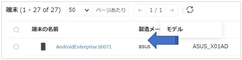 プロファイル画面からはどのデバイスにプロファイルが割り当たっているかが分からないため、端末一覧画面の検索から確認できます。